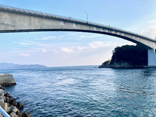 風呂から上がって、橋と海を眺めてたらキレイな感じやったし写真を撮ってみた。